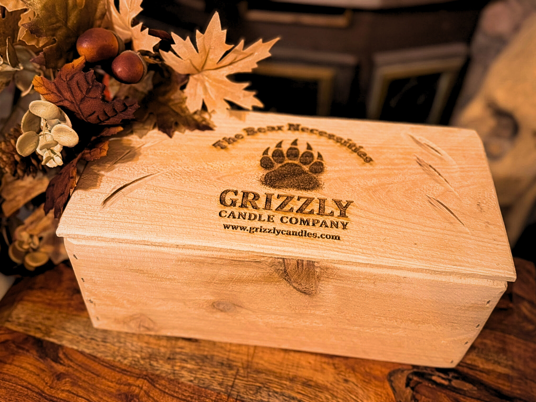 Experience the wilderness at home with the Grizzly Candle Co. Handcrafted Gift Box — a 3-pack of highly scented candles in a beautifully engraved keepsake box. Rugged, cozy, and timeless, this set is perfect for birthdays, holidays, or as a thoughtful gift.